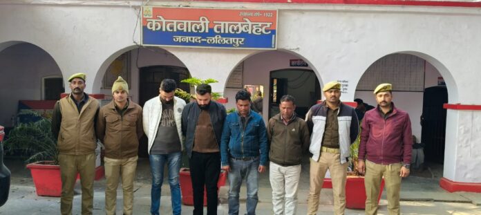 ललितपुर। उत्तर प्रदेश के ललितपुर में अपर पुलिस महानिदेशक कानपुर जोन कानपुर एवं पुलिस महानिरीक्षक झांसी, परिक्षेत्र झांसी के निर्देश के क्रम में, पुलिस अधीक्षक जनपद ललितपुर मो0 मुश्ताक के निर्देशन व अपर पुलिस अधीक्षक ललितपुर  कालू सिंह एंव क्षेत्राधिकारी तालबेहट  रक्षपाल सिंह के निकट पर्यवेक्षण में थाना तालबेहट पर पंजीकृत *मु0अ0सं0 06/2026 धारा 111/318(4)/ 61(2)/ 338/ 352/351(3)/ 336(3)/ 340(2) BNS के अभियोग में वाँछित अभियुक्तगण 1.भरत वर्मा 2.मुकेश कुमार जैन 3.रविशंकर तिवारी उर्फ रवि तिवारी 4. विनोद कुमार तिवारी उर्फ रानू* को नियमानुसार गिरफ्तार कर मा0 न्यायालय पेश किया जा रहा है ।