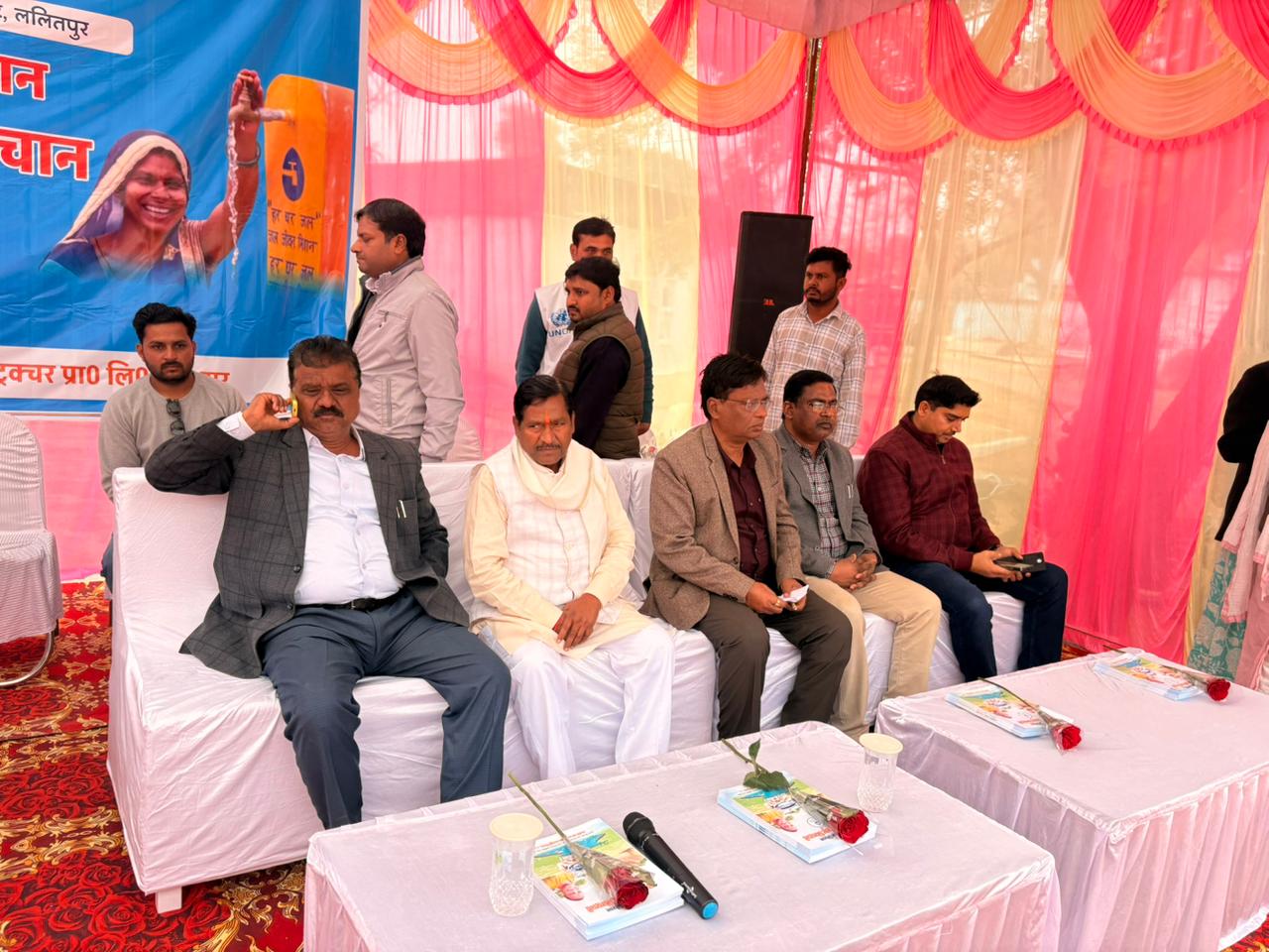 ललितपुर। उत्तर प्रदेश के ललितपुर में आज दिनांक-27.01.2026 को सदर विधायक रामरतन कुशवाहा ललितपुर, जिला अध्यक्ष हरीशचन्द्र रावत, मण्डल अध्यक्ष नीरज पटैरिया,हरपाल सिंह सिसोदिया, ग्राम प्रधान श्रीमति सुमन देवी, अपर जिलाधिकारी नमामि गंगे श्री राजेश कुमार श्रीवास्तव, उपजिलाधिकारी ललितपुर, खण्ड विकास अधिकारी तालबेहट, श्री अवनीश सिंह अधिशासी अभियन्ता जल निगम (ग्रामीण), श्री जे०के० गुप्ता अधिशासी अभियन्ता (वि०/यां०) जल निगम झांसी, कार्यदायी संस्था मेसर्स दारा इंजीरियरिंग के प्रोजेक्ट मेनेजर श्री सुभाष विश्नोई एवं ग्राम रामपुर के समस्त ग्रामवासियों / प्राथमिक विद्यालय के अध्यापकों एवं विद्यार्थियों की उपस्थिति में मेसर्स दारा इंजीनियरिंग द्वारा क्रियान्वित बदनपुर ग्राम समूह पेयजल योजना के ग्राम पंचायत रामपुर में जल अर्पण दिवस का आयोजन किया गया। जिसमें मंच का संचालन श्री बृजमोहन संज्ञा द्वारा किया गया।