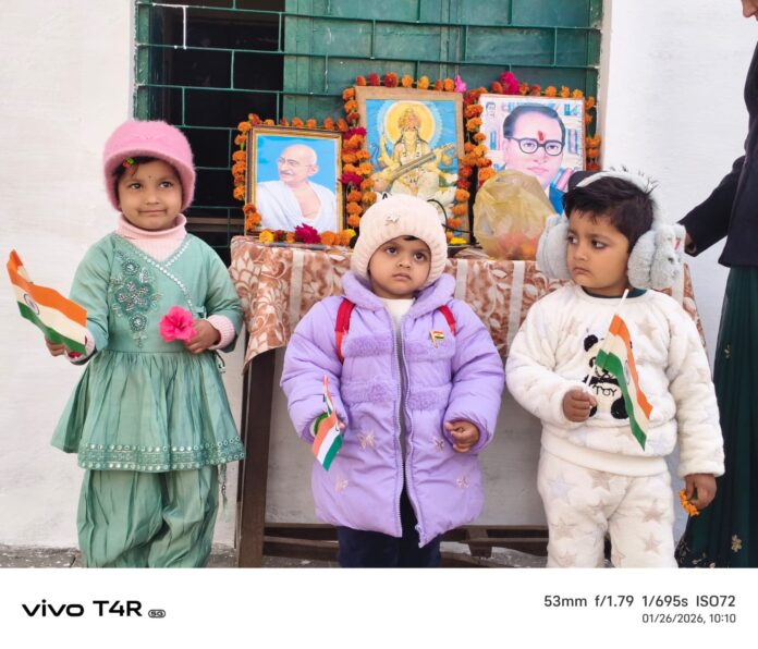 तालबेहट(ललितपुर ) । उत्तर प्रदेश के ललितपुर में।ग्रामीण अंचलों में 77 वां गणतंत्र दिवस बड़े ही धूमधाम एवं हर्षोल्लास से मनाया गया। आदर्श ग्राम पवा के कन्या प्राथमिक विद्यालय के बच्चों ने सुबह प्रभातफेरी निकाली एवं इंचार्ज प्रधानाध्यापिका शोभना सिंह ने ध्वजारोहण किया। शिरोमणि सिंह बुंदेला ने कहा संविधान का सम्मान करना हम सभी का नैतिक कर्तव्य है।बुंदेलखंड प्राथमिक शिक्षक संघ के प्रांतीय सह प्रवक्ता विशाल जैन पवा ने स्वतंत्रता के अमर शहीदों को नमन करते हुए देश की आजादी में उनके योगदान, संविधान निर्माण एवं लोकतंत्रात्मक राज्य की स्थापना एवं गणतंत्र दिवस के महत्व पर प्रकाश डाला।