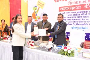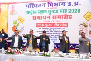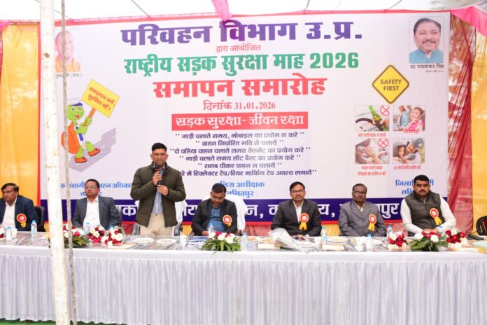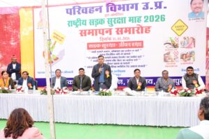 ललितपुर। उत्तर प्रदेश के ललितपुर में राष्ट्रीय सड़क सुरक्षा माह 2026, दिनांक 01.01.2026 से 31.01.2026 तक मनाये जाने के क्रम में शनिवार को सड़क सुरक्षा माह का समापन समारोह परिवहन कार्यालय में जिलाधिकारी सत्य प्रकाश की अध्यक्षता एवं पुलिस अधीक्षक मो0 मुस्ताक अहमद, अपर पुलिस अधीक्षक कालू सिंह, एआरटीओ विपिन चौधरी, जिला सूचना अधिकारी डीएस दयाल, अधिशासी अभियंता लो0नि0वि0, नोडल अधिकारी ओपी चौधरी, पीटीओ लिलि चौधरी, नरेन्द्र सिंह आदि की उपस्थिति में व्यापक रुप से सम्पन्न हुआ।