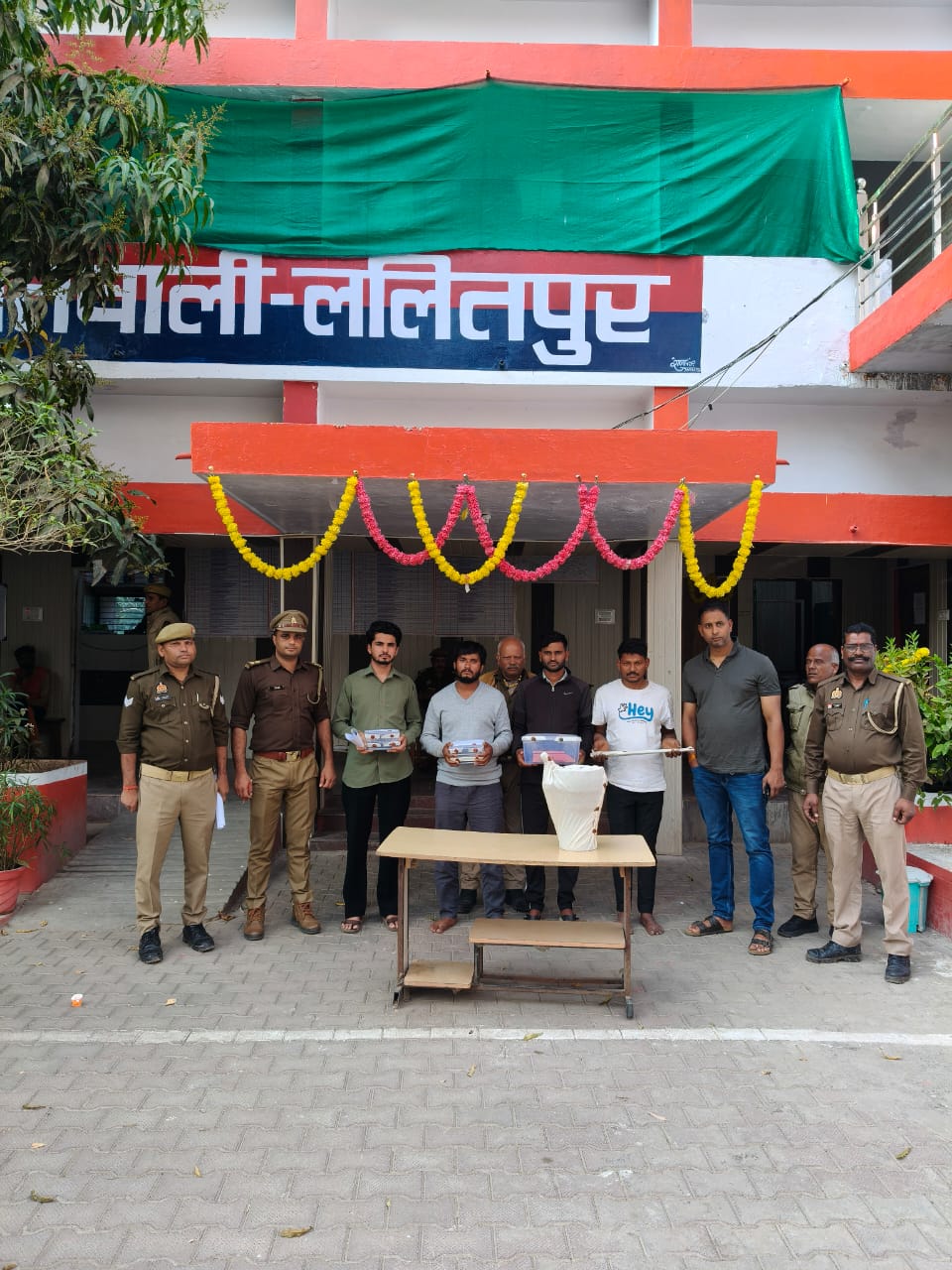 ललितपुर। उत्तर प्रदेश के ललितपुर में अपर पुलिस महानिदेशक, कानपुर जोन, कानपुर एवं श्रीमान् पुलिस महानिरीक्षक, झांसी परिक्षेत्र, झांसी के निर्देश के क्रम में पुलिस अधीक्षक, ललितपुर मो0 मुश्ताक के निर्देशन में, अपर पुलिस अधीक्षक जनपद ललितपुर कालू सिंह व क्षेत्राधिकारी सदर सुनील कुमार के पर्यवेक्षण में अपराध एवं अपराधियों के विरुद्ध चलाये जा रहे अभियान के क्रम में कोतवाली ललितपुर पुलिस, स्वाट व सर्विलांस की संयुक्त टीम द्वारा थाना स्थानीय पर पंजीकृत मु0अ0सं0 189/2026 धारा 305 BNS की विवेचनात्मक कार्यवाही के क्रम में प्रकाश में आये वांछित अभियुक्तगण 1.नितेश पुत्र सेवालाल उम्र करीब 29 वर्ष निवासी ग्राम सागवाडिया थाना सदर जिला बाँसवाडा राजस्थान, 02. देवीलाल मईडा पुत्र लाडजी मईडा उम्र करीब 32 वर्ष निवासी ग्राम बिजलिया नयागाँव थाना सदर बाँसवाडा जिला बाँसवाडा राजस्थान, 3. प्रकाश मईडा पुत्र भोगजी मईडा उम्र करीब 32 वर्ष निवासी ग्राम पानीवाला गढा ताजपुर थाना सदर जनपद बाँसवाडा राजस्थान तथा 4. श्रेयांस पांचाल पुत्र विजय पांचाल उम्र करीब 24 वर्ष निवासी आजादचौक लुहारवाडा थाना कोतवाली बाँसवाडा जिला बाँसवाडा राजस्थान को नियमानुसार गिरफ्तार कर, न्यायिक अभिरक्षा हेतु मा0 न्यायालय के समक्ष भेजा गया है ।